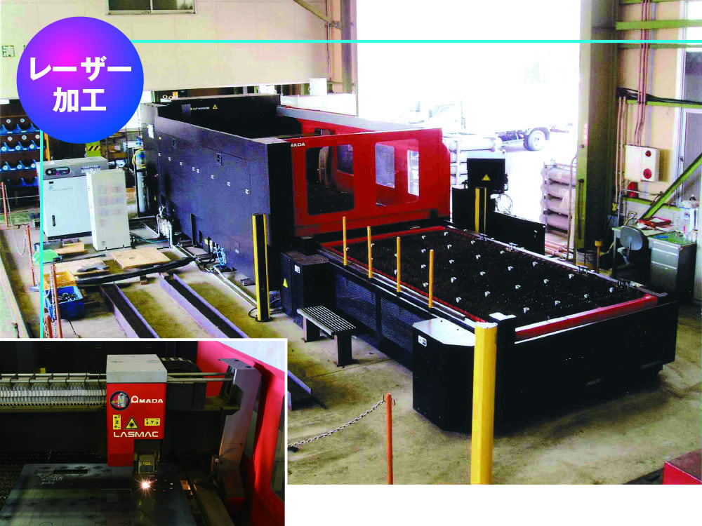 一方で省力化・自動化も進められています。鉄板などの設計パーツは、データ通り正確にレーザーカットされていきます。